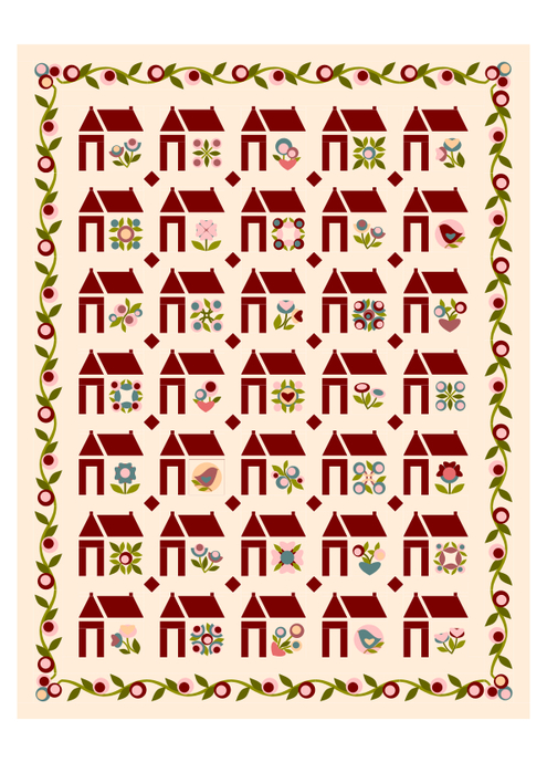 Obsah: Spotřeba, popis potřebných pomůcek, podrobný návod na přípravu látkových aplikací, tipy na obtížná místa aplikací, šablony 35 bloků s látkovou aplikací + bordury + šití na papír. Schéma quiltu. Jeden bonus. Návod na šití na papír není součástí návodu.